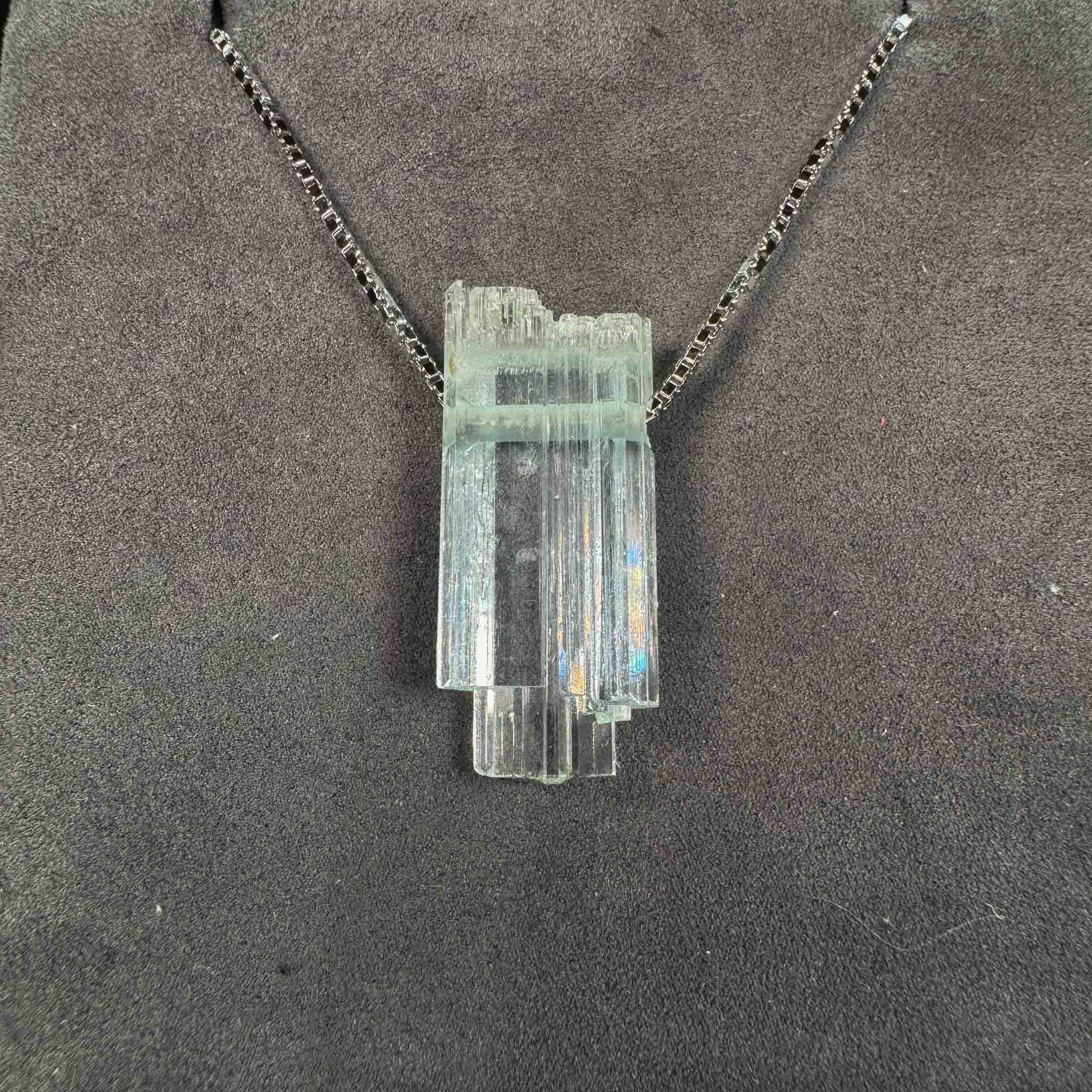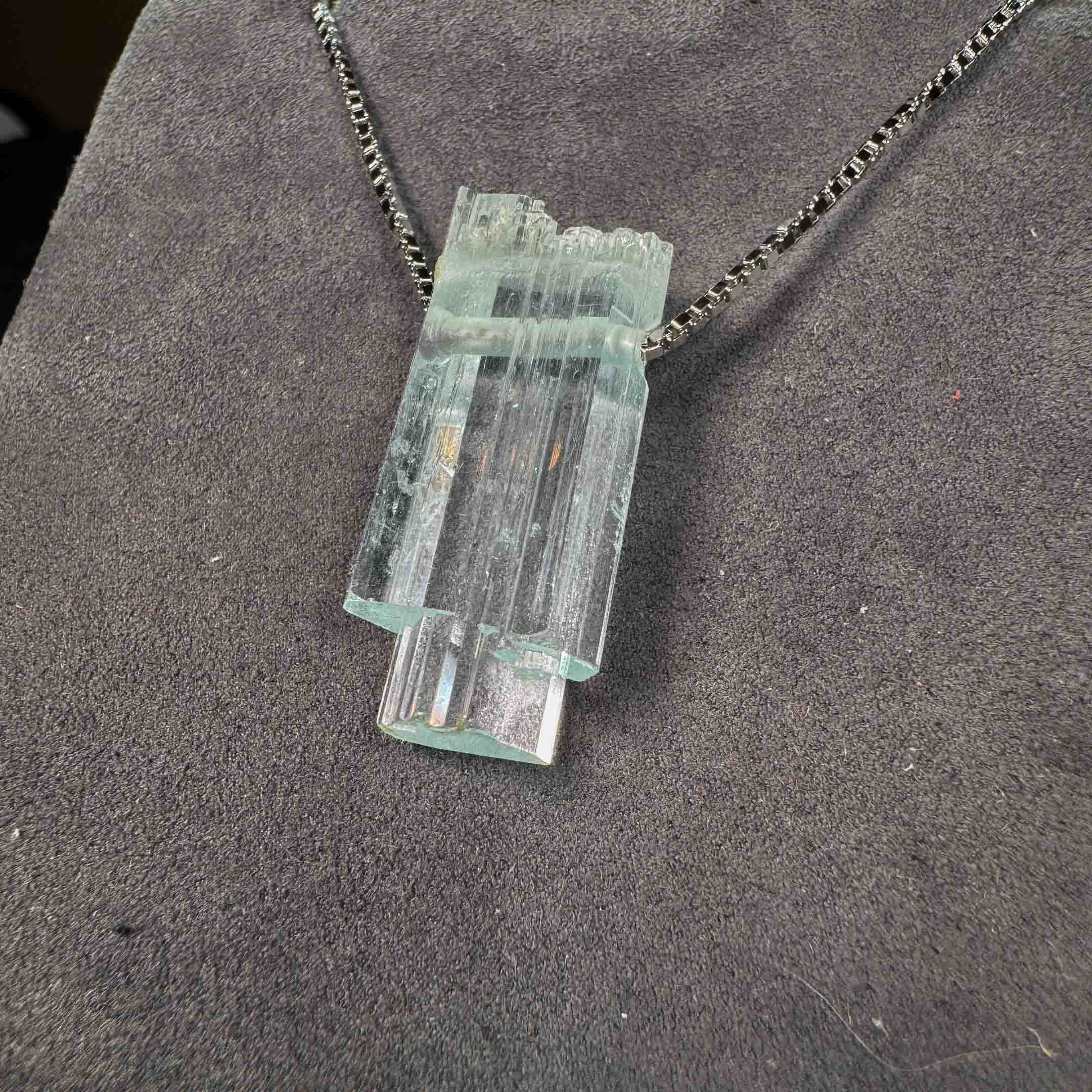 This natural crystal has a light blue color and double termination. It means that it has naturally finished growing at the top and bottom.