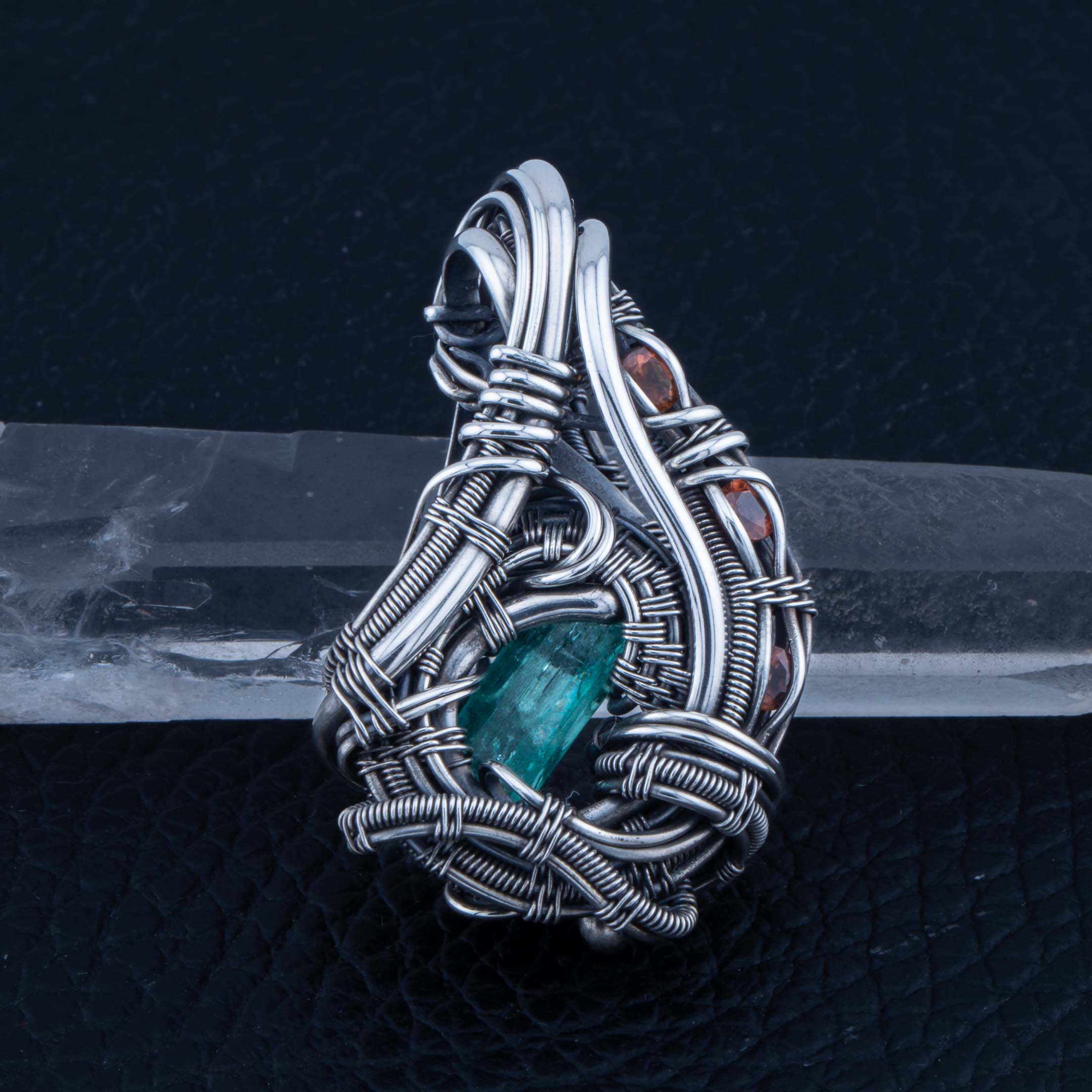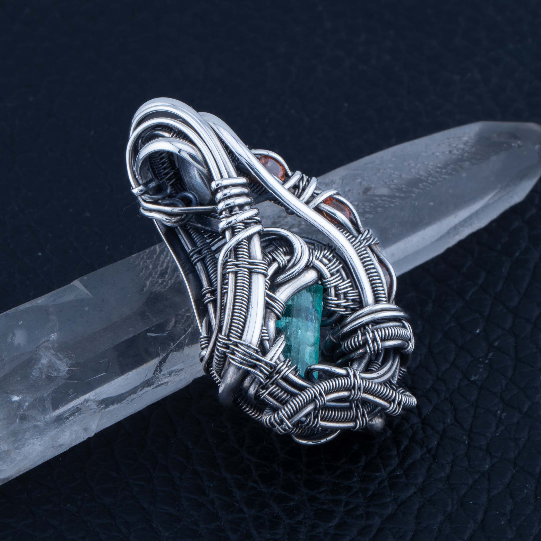 Dieser Anhänger umfasst 4 Edelsteine in 935 Silberdraht.
