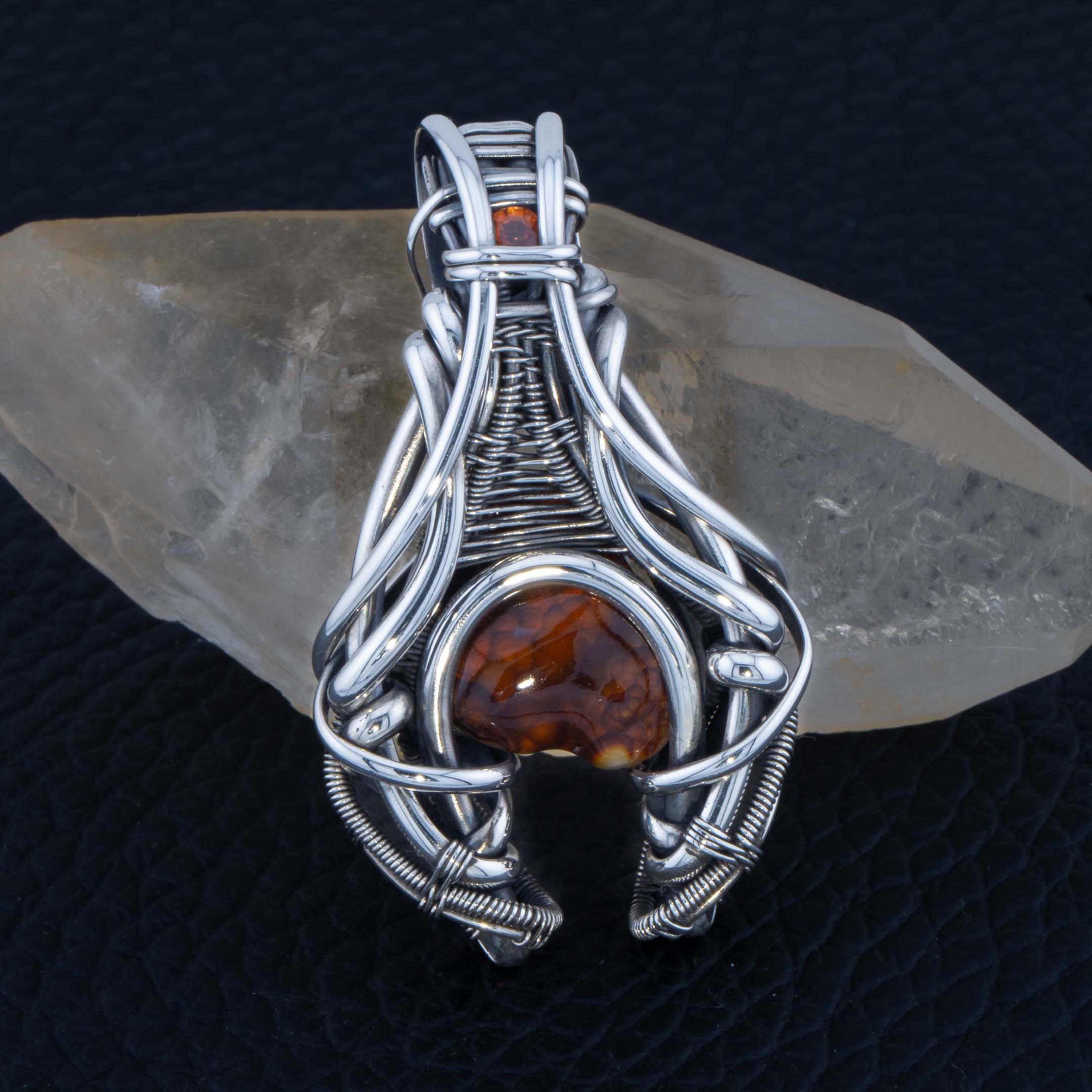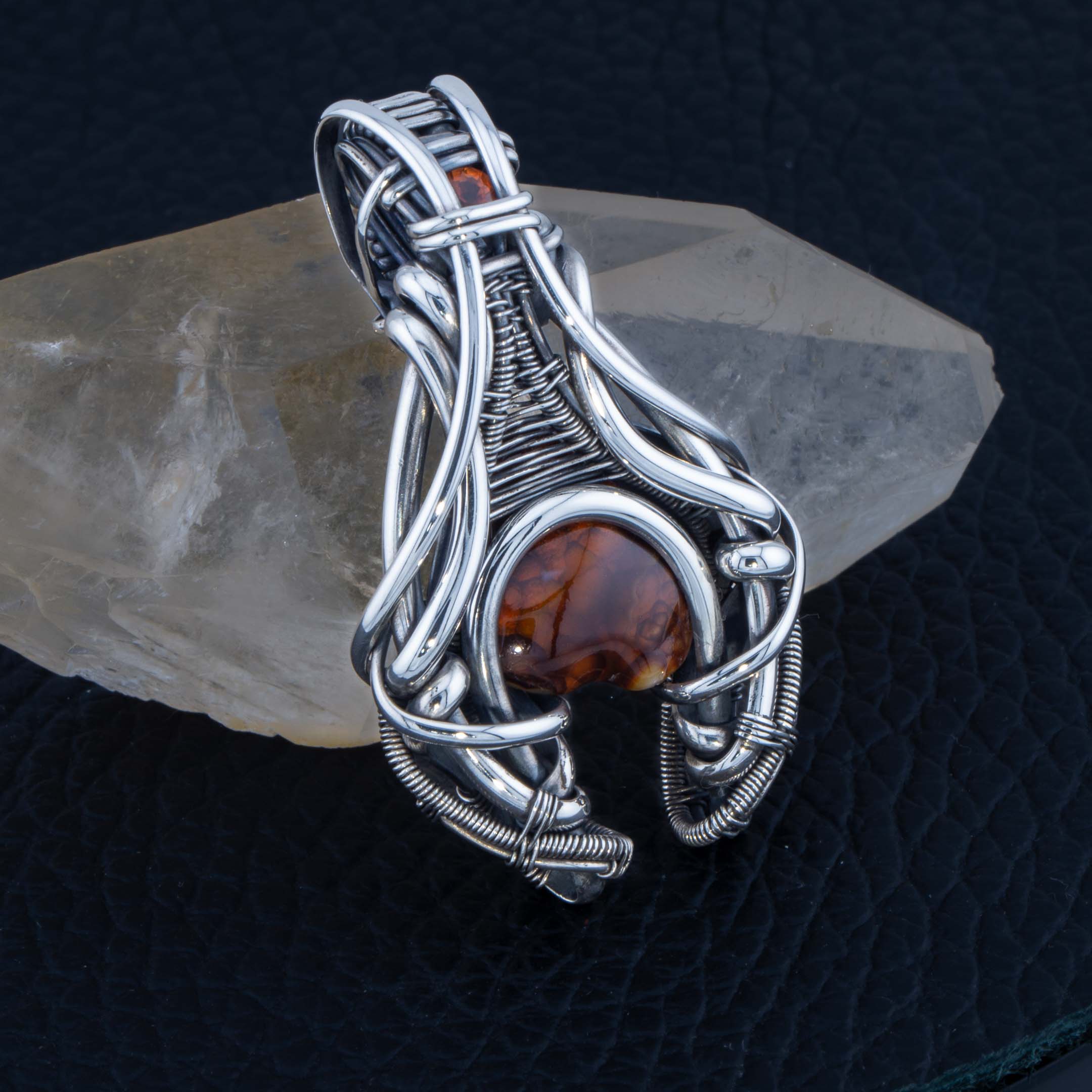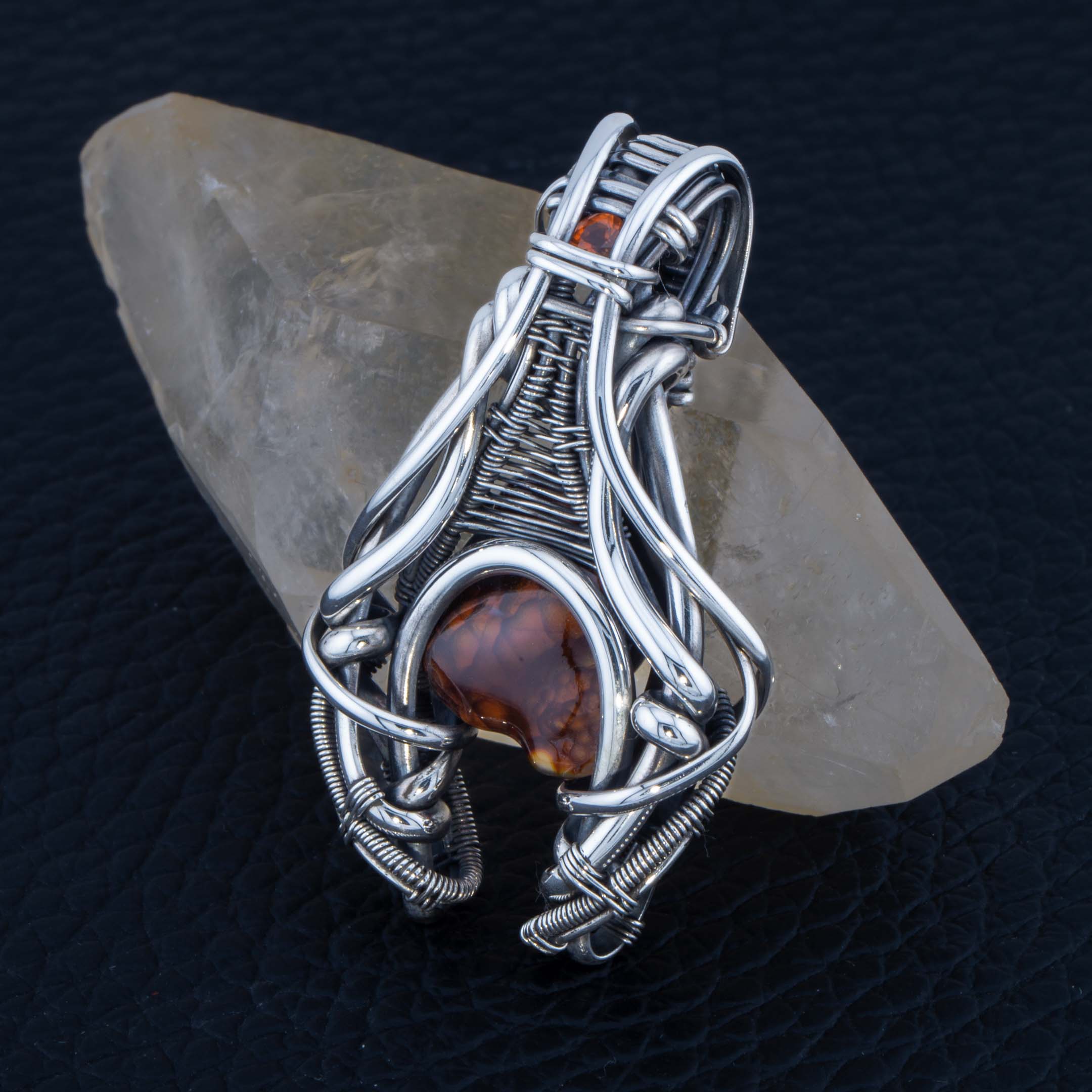 This pendant contains 2 gemstones in 935 silver wire.
