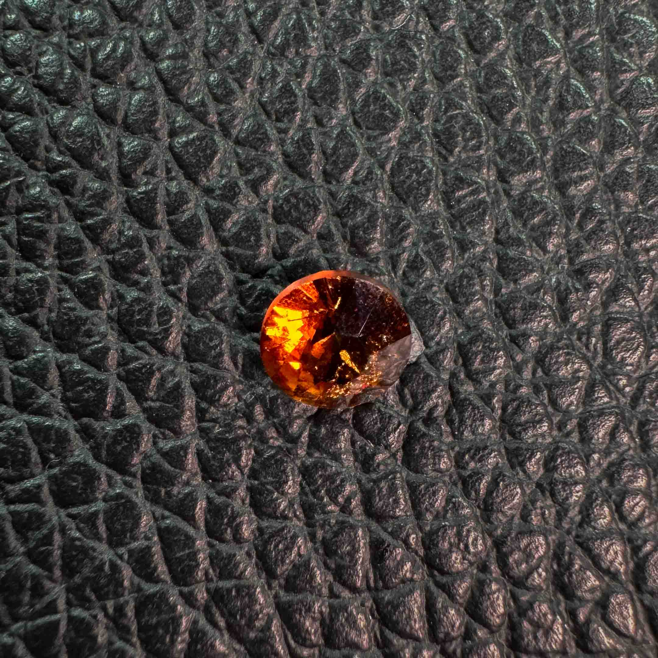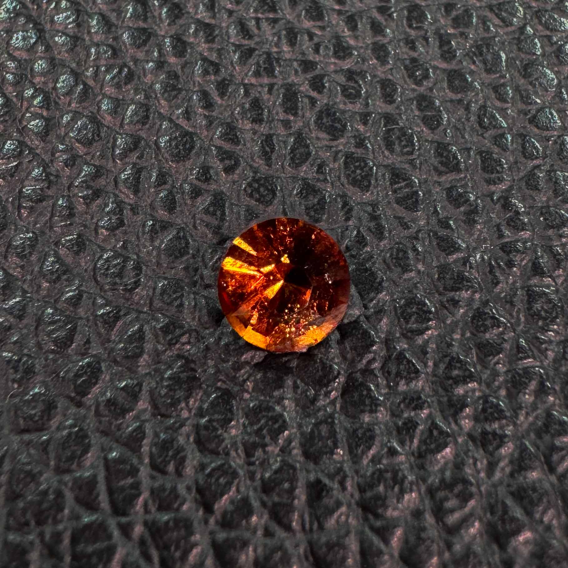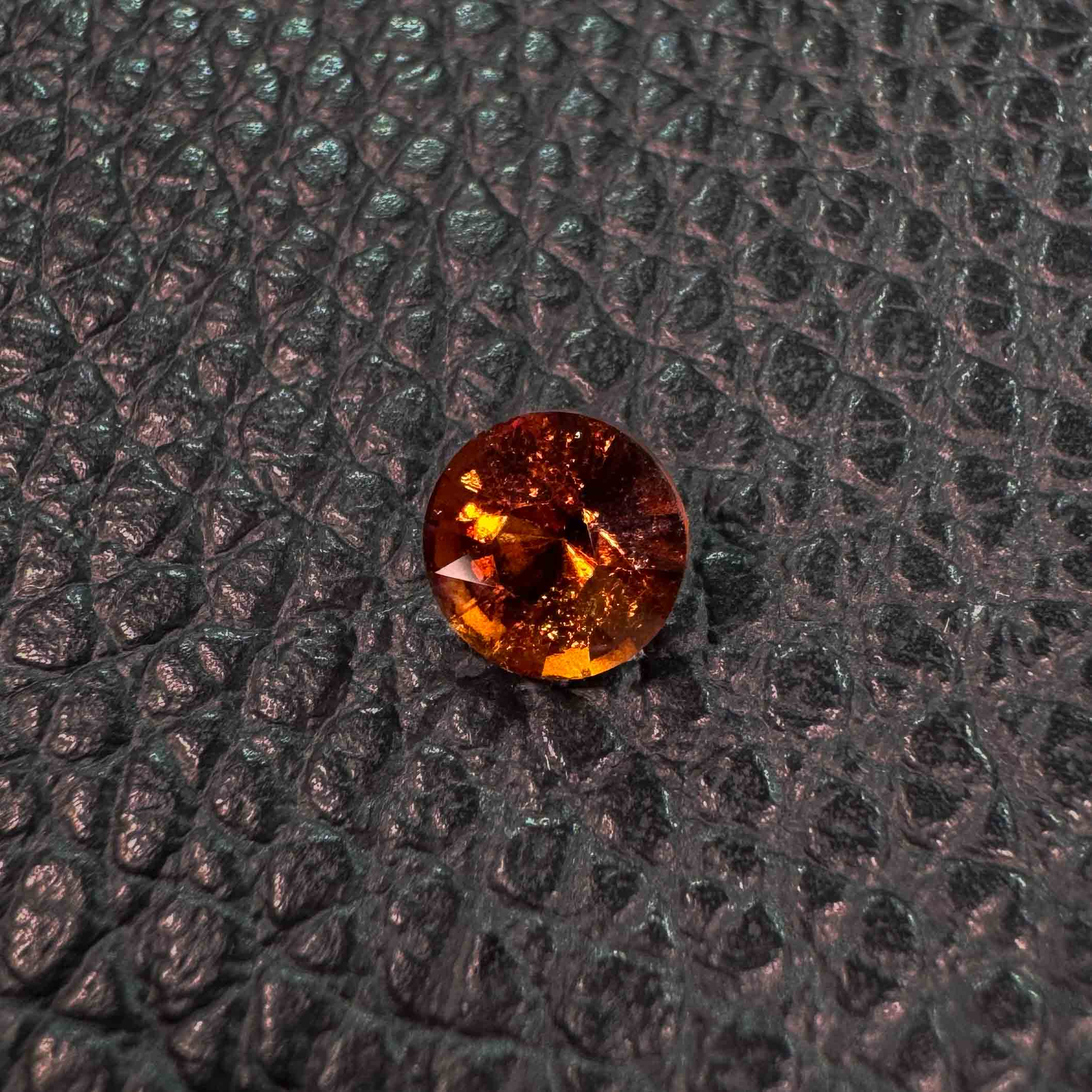 I cut this orange hessonite garnet into a round brilliant cut. I would love to craft a custom piece of jewelry featuring this stone.