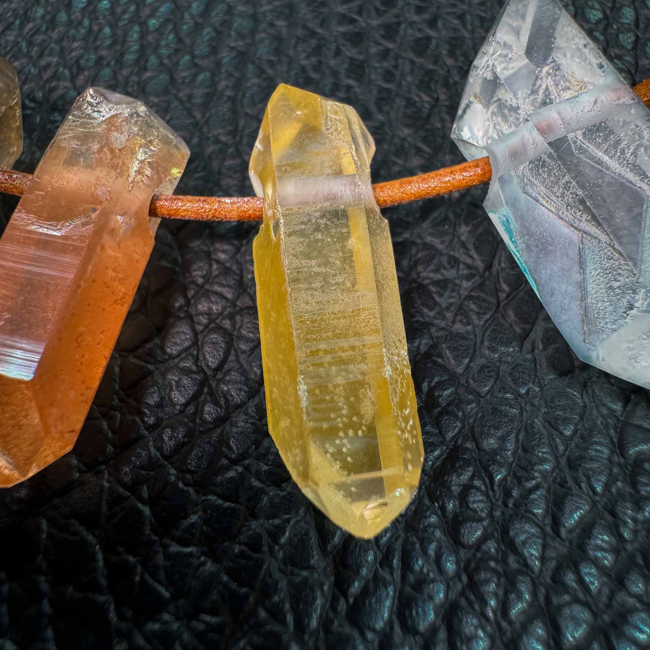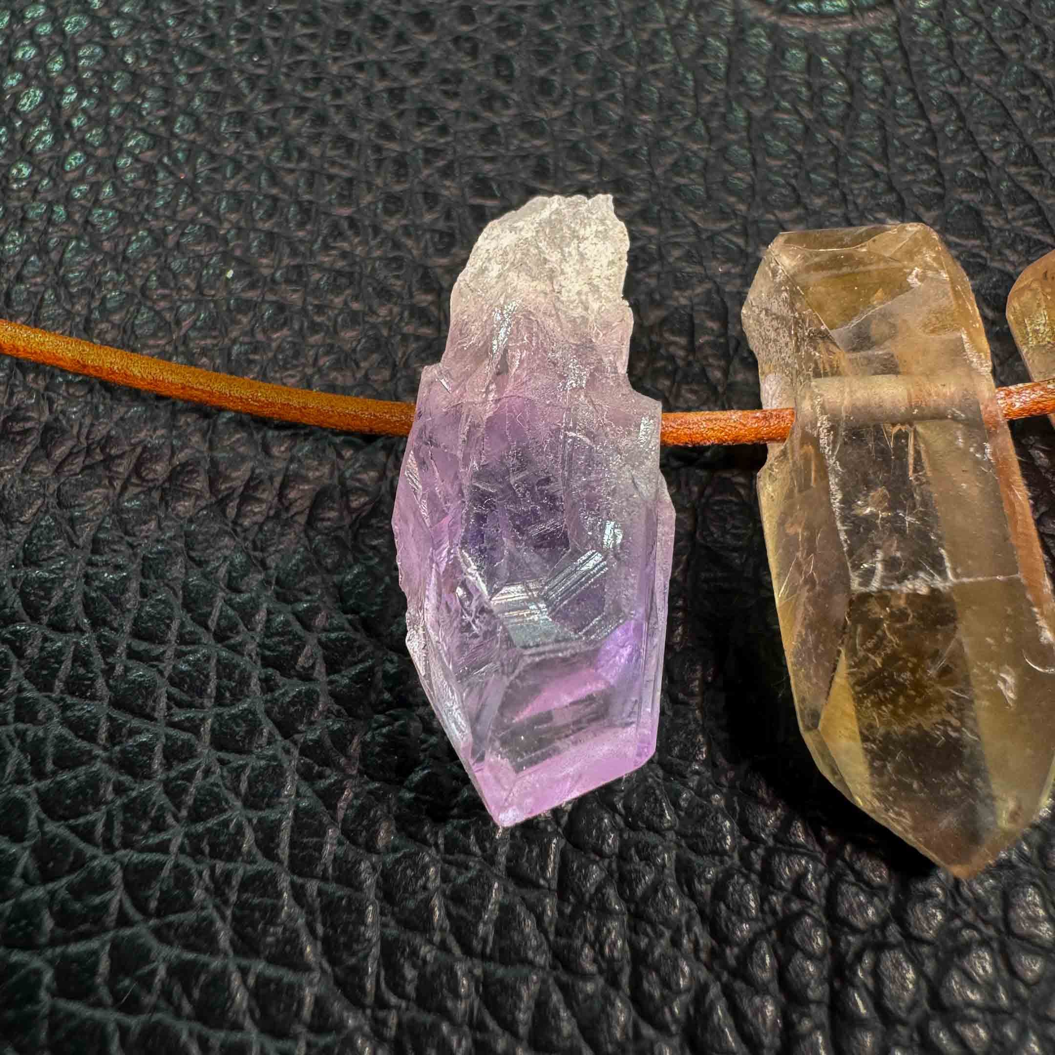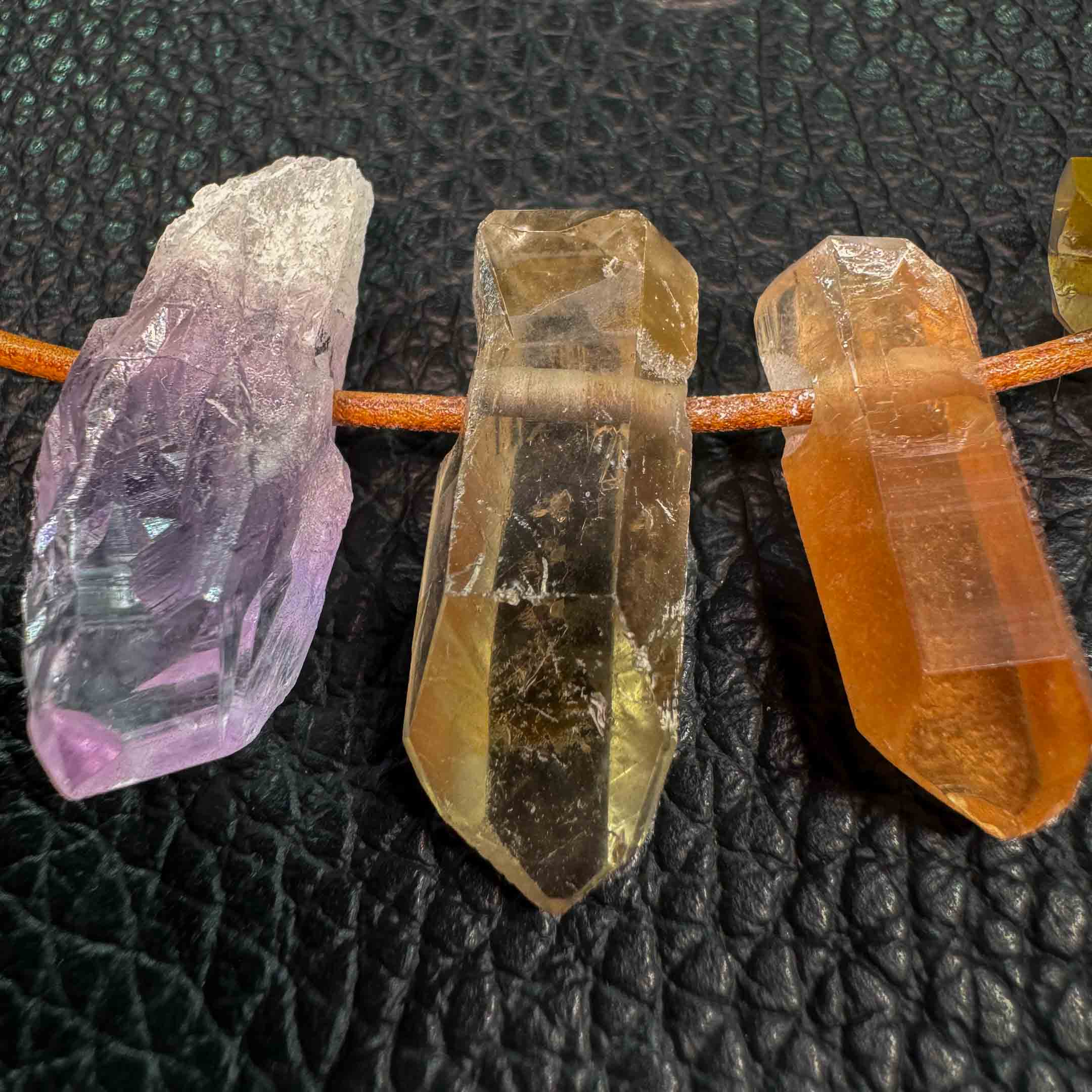 Amethyst, Smoky Quartz, Tangerine Quartz, Citrine, or Clear Quartz.