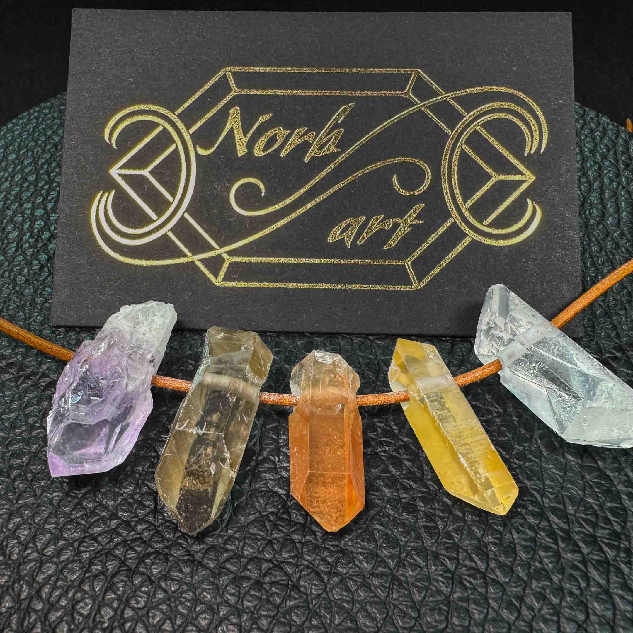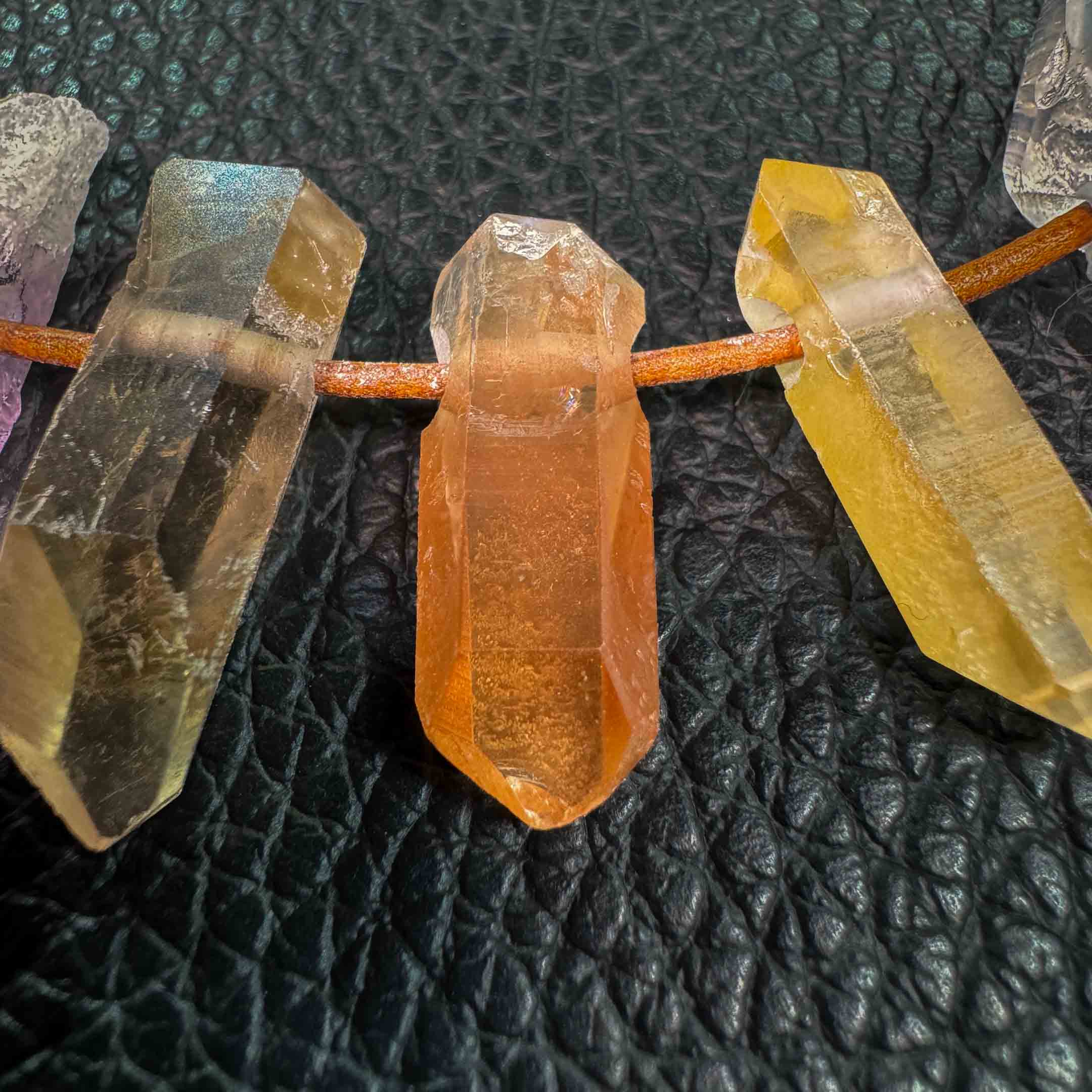Amethyst, Rauchquarz, Mandarinquarz, Citrin oder Bergkristall.