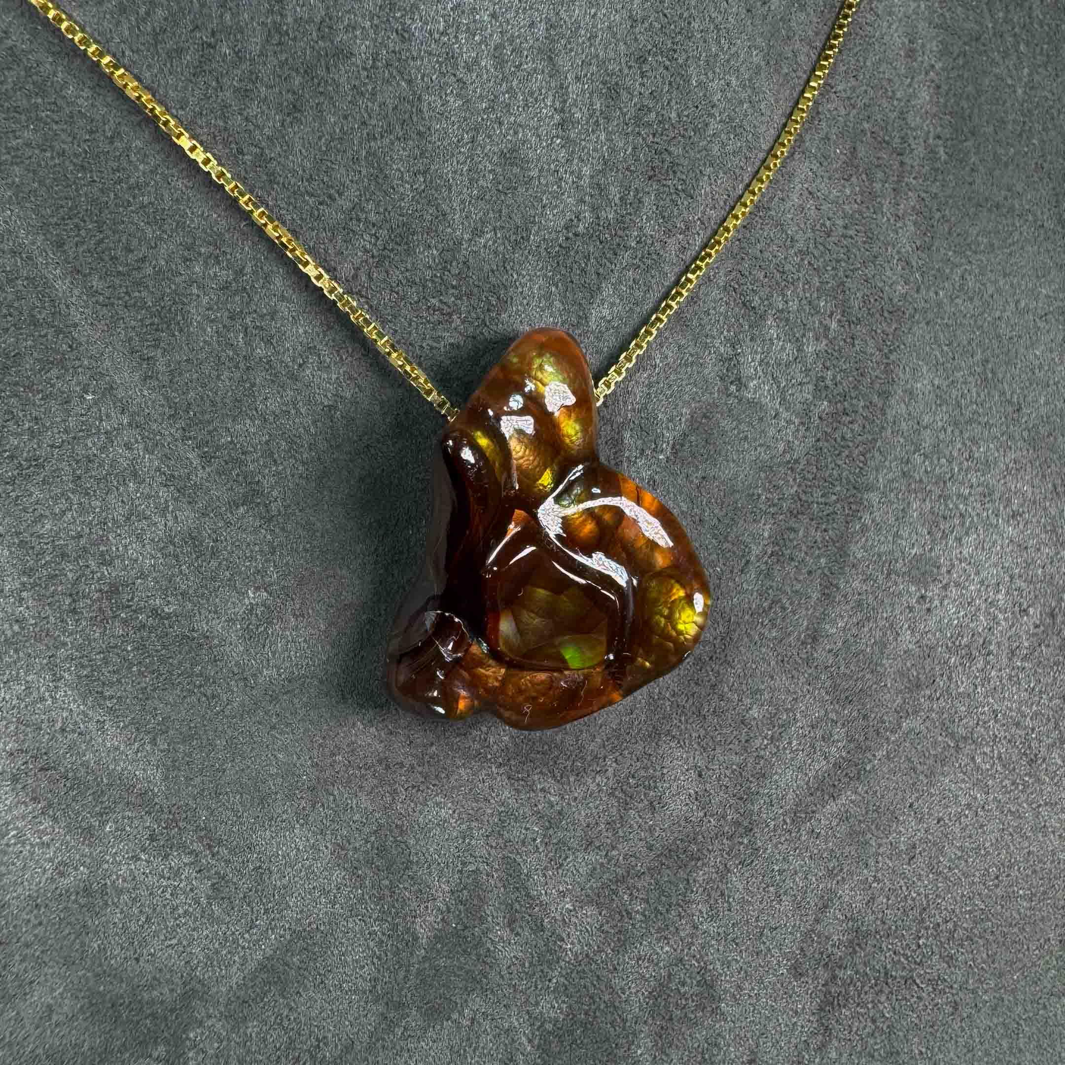 Dieser sehr farbintensive, selbstgeschliffene Feuerachat strahlt in königlicher Pracht.